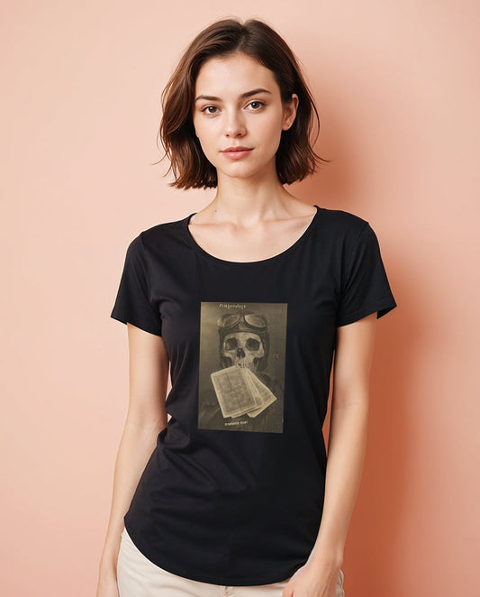 Havacı Kafatası Geniş Yaka Tişört