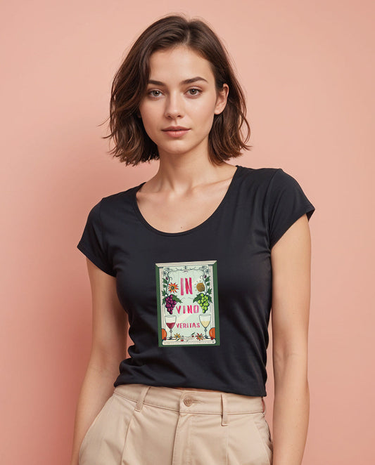 In Vino Veritas Geniş Yaka Tişört