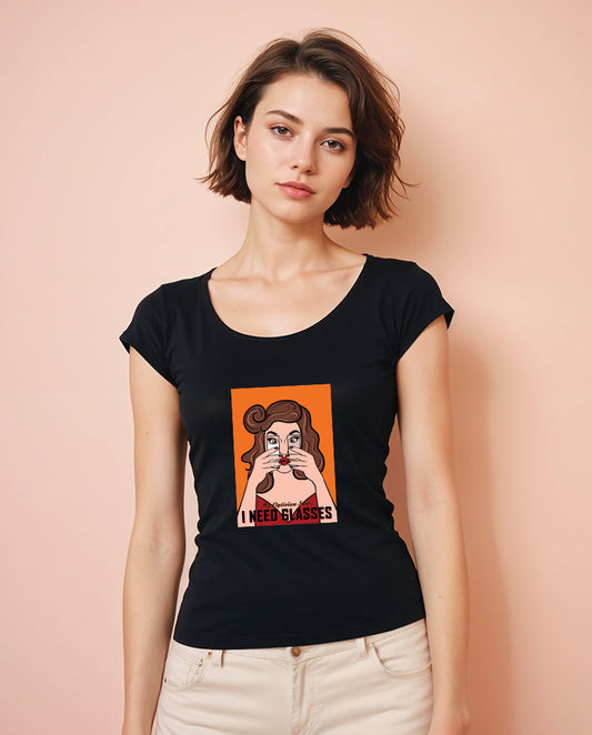 İndirimI Need Glasses Geniş Yaka Tişört