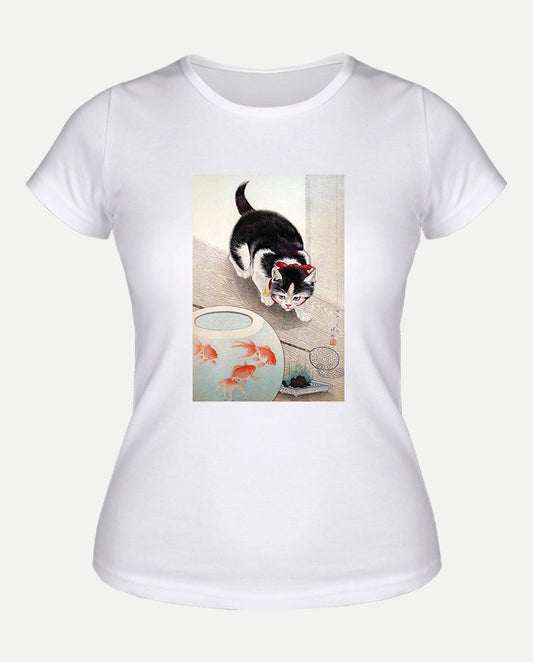 Kedi ve Japon Balığı Kasesi Kadın Tişört