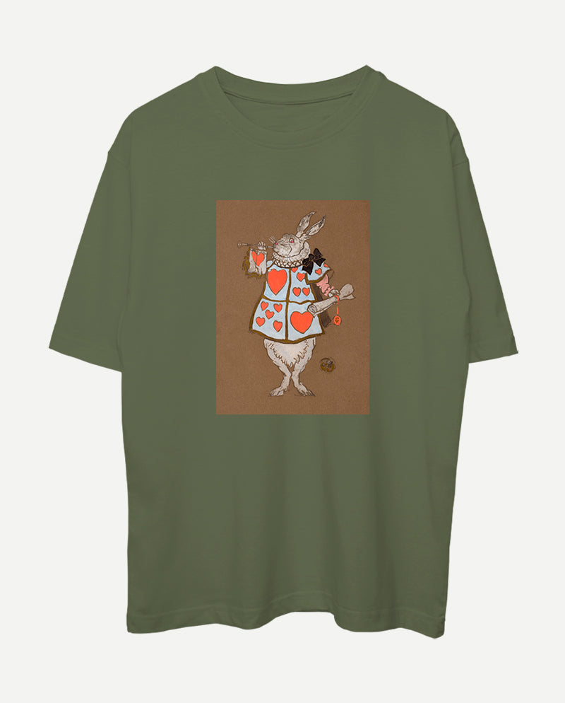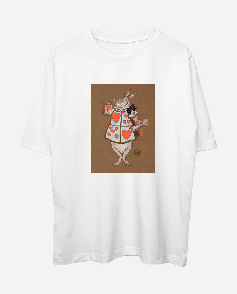 Beyaz Tavşan Oversize Tişört