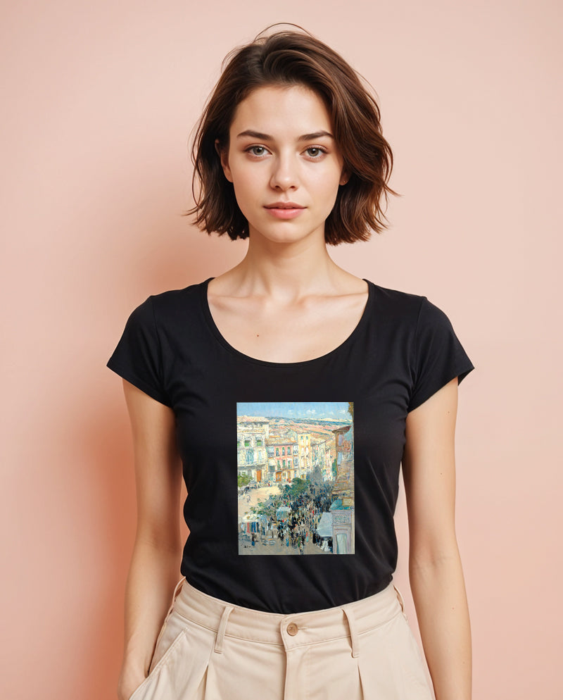 Bir Güney Fransa Şehrinin Manzarası Geniş Yaka Tişört