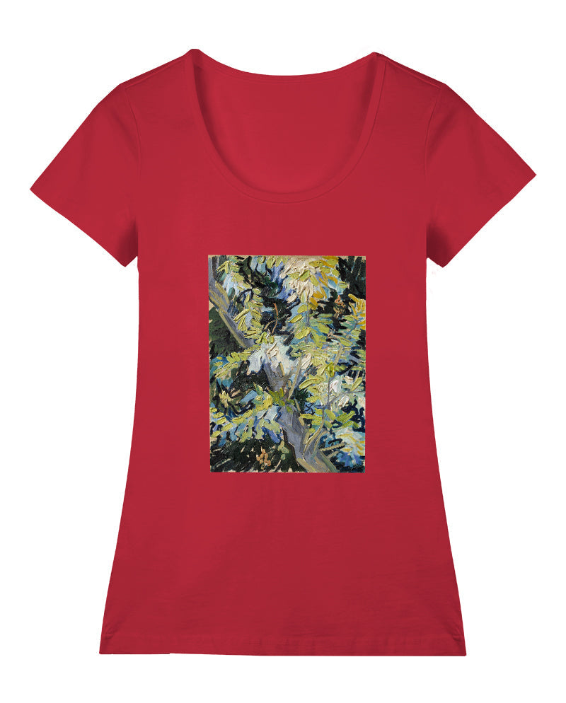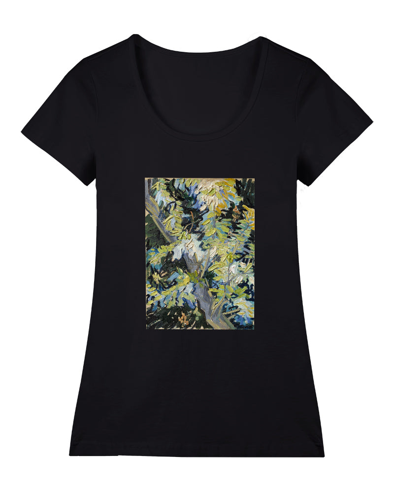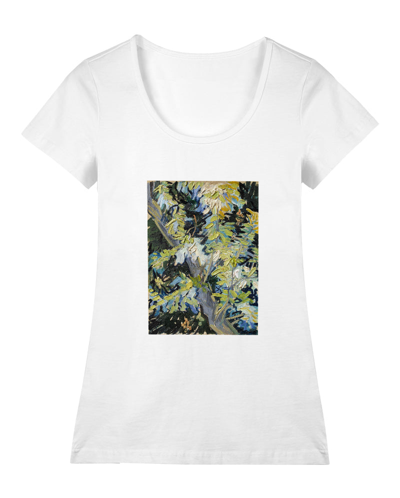 Çiçek Açan Akasya Dalları Geniş Yaka Tişört