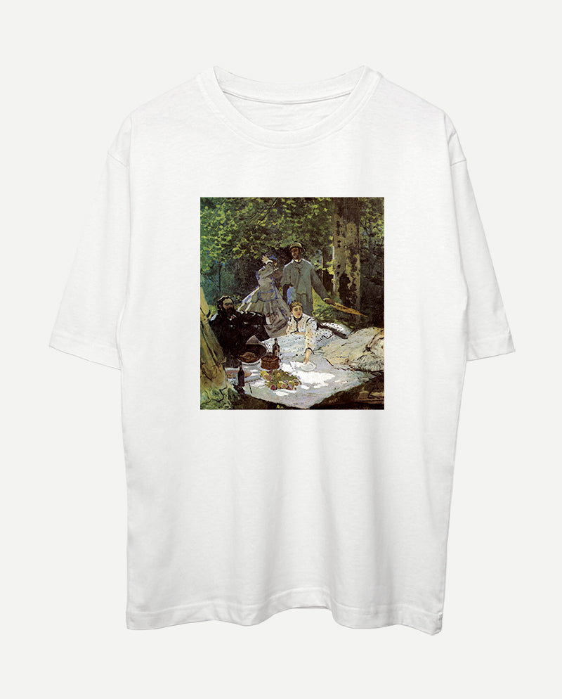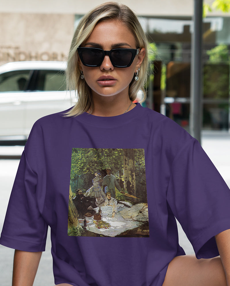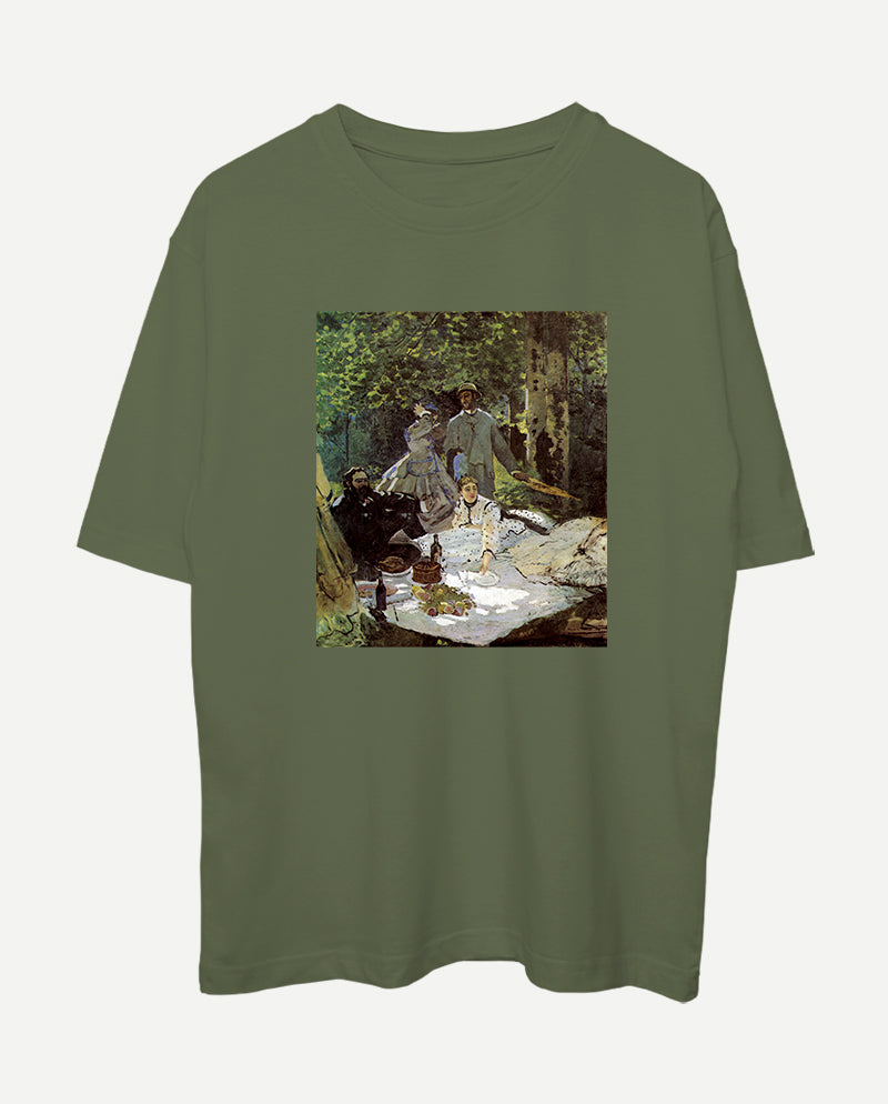 Çimlerin Üzerinde Öğle Yemeği Oversize Tişört