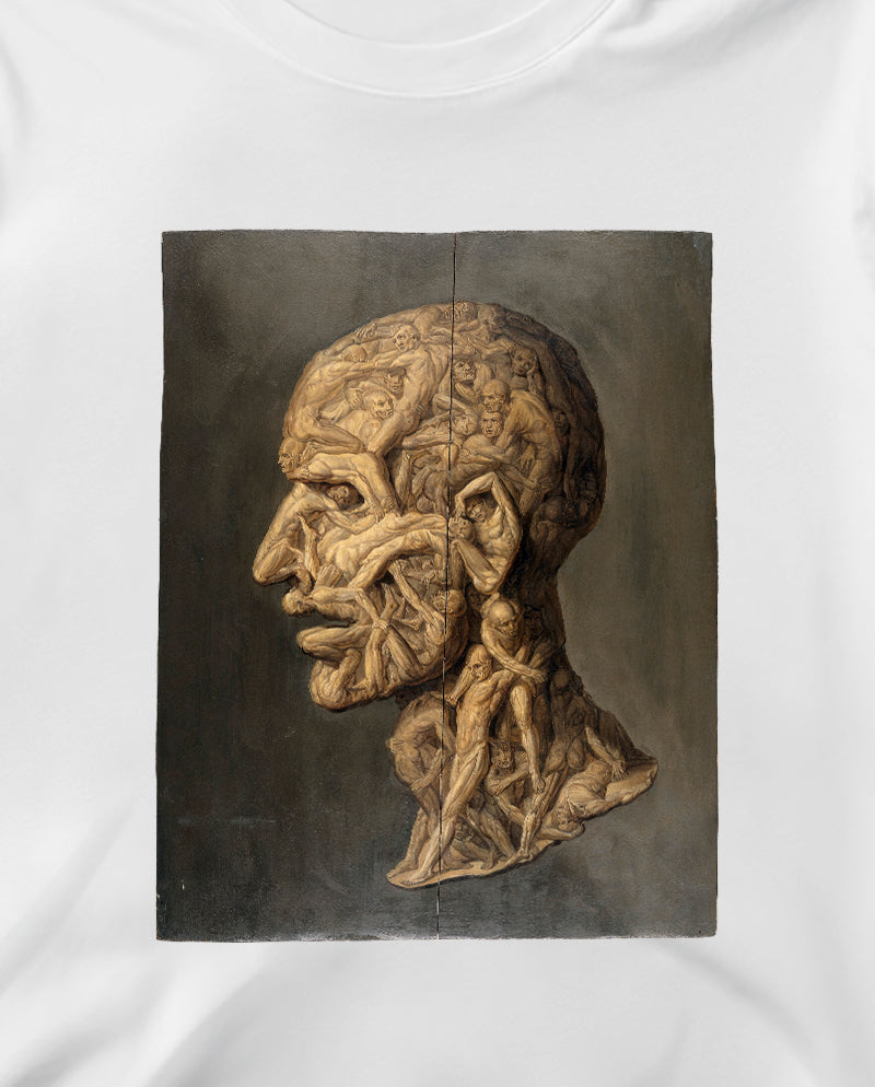 Çıplak Vücutlardan Oluşan Adam Kafası Crop Tişört