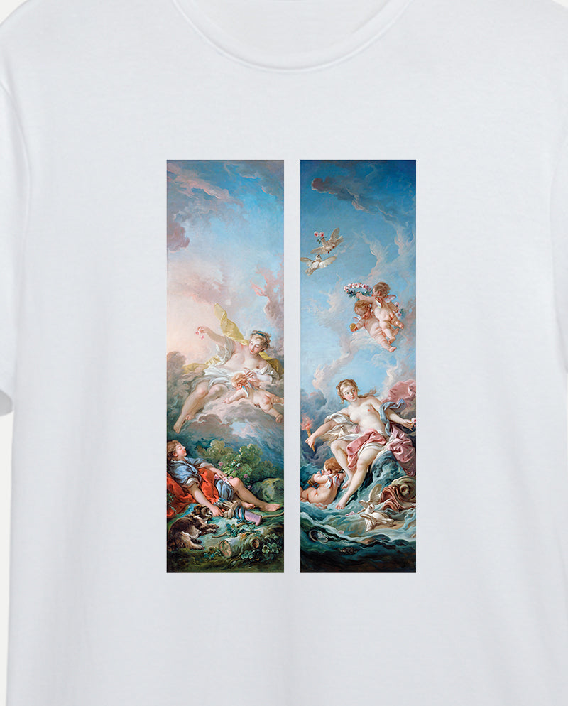 Tarihin en ikonik görsellerinden Dalgaların Üstünde Venüs, aslında Jean-François Bergeret de Frouville tarafından Marais'deki özel evi için François Boucher'e yaptırılan bir dizi dekorasyona ait. Dekorasyonun devamı, şu anda Teksas’ta bulunan Kimbell Sanat Müzesi'nde sergilenen mitolojik temalı dört başka resmi daha içeriyordu. Bu altı resim Boucher'in o güne kadarki en iddialı dekoratif döngüsünü oluşturuyordu. Boucher, bu ölümsüz eserini tamamladıktan yaklaşık bir yıl sonra hayata gözlerini yumdu.