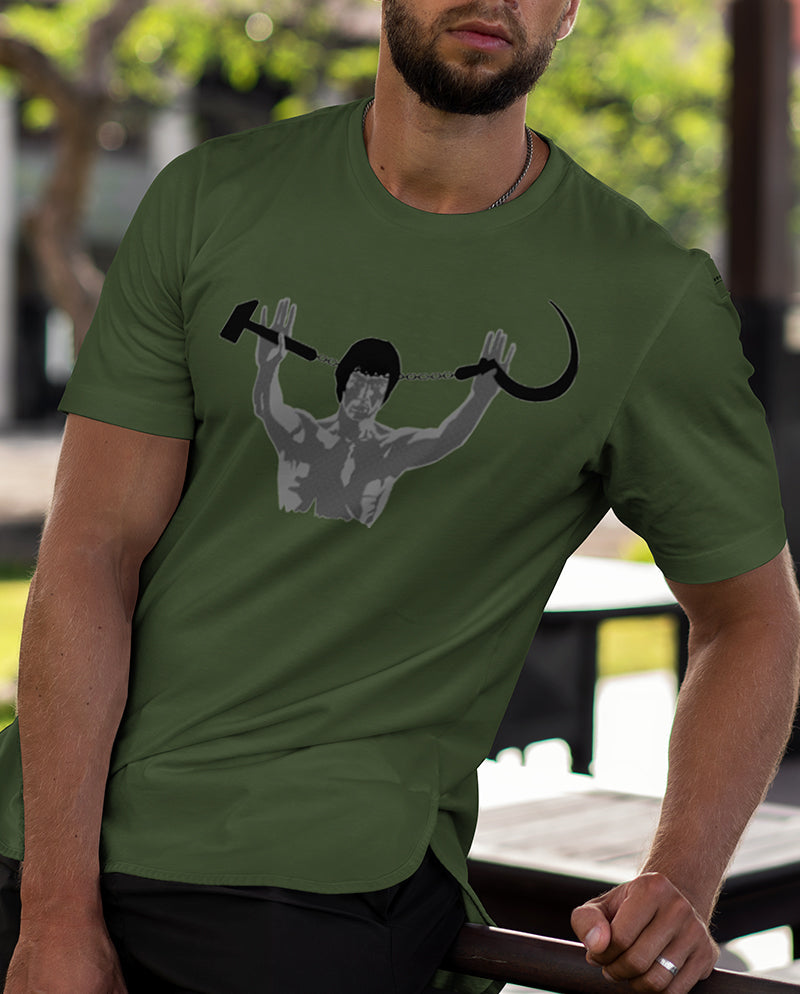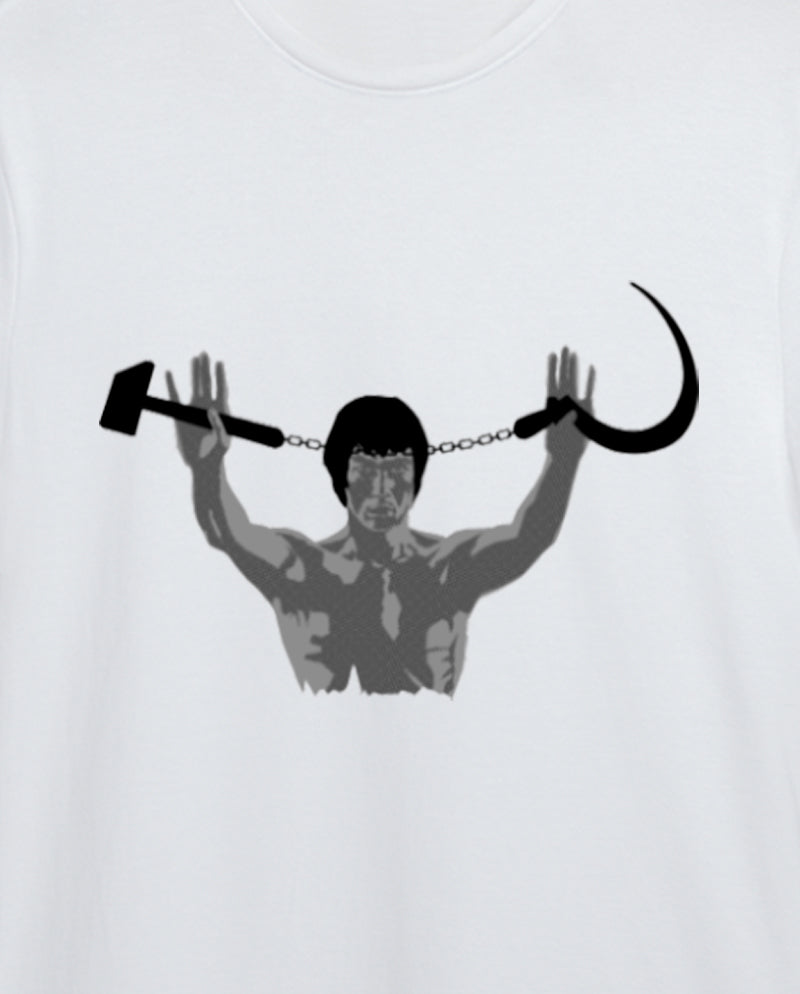 “Enter the Dragon” filminde Bruce Lee ile tanıştığımız nunçaku, Turgut Yüksel’in tasarımıyla özüne dönüyor. İdeal formunda orak-çekiç kullanımı.