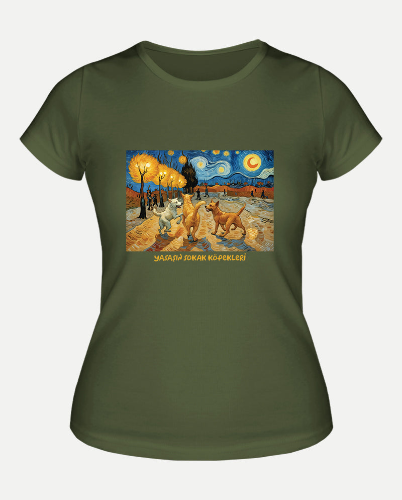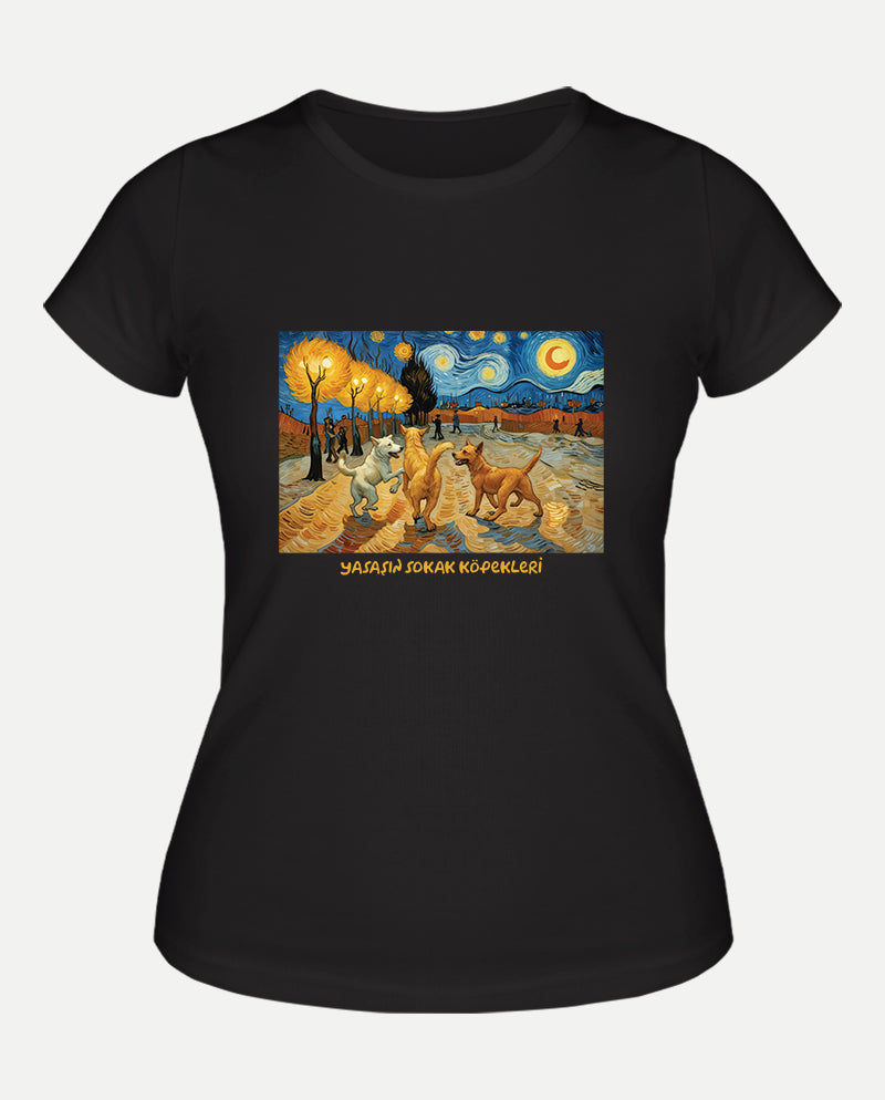 Gece Yürüyüşü - Van Gogh Sokakta Kadın Tişört