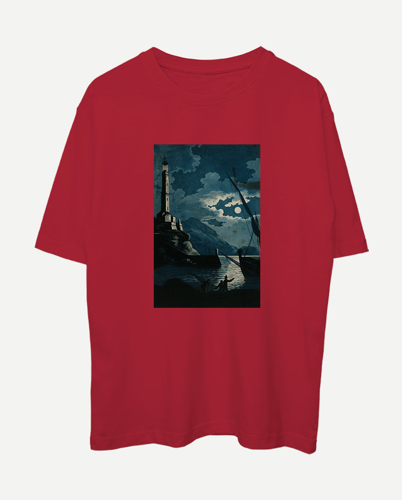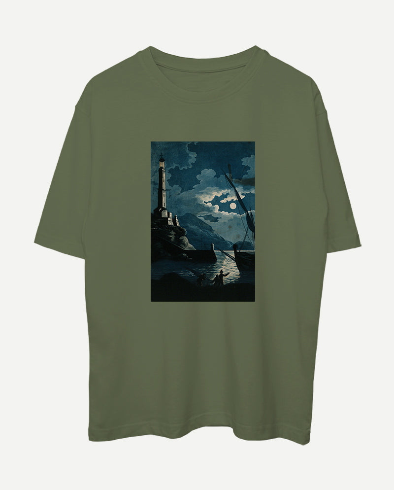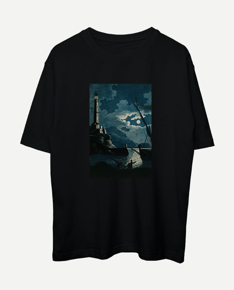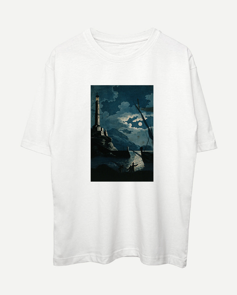 Geceleyin Cenova feneri; ön planda bir gemi ve üç adam. H. Merke tarafından akuatint yöntemiyle yapılan 16 Mart 1800 tarihli eser.