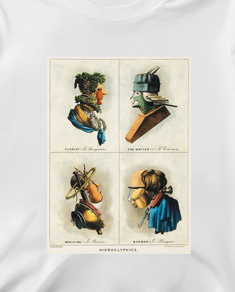 Londra merkezli yayıncı Samuel William Fores'ın çiçekçi, yazar, müzisyen ve berber mesleklerine ait dört kompozit portreyi resmettiği leke baskısında, karakterlerin yüz hatları tamamen mesleklerini icra ettikleri aletlerden oluşuyor. Aynı serinin şapkacı, manav, balıkçı, terzi, bakırcı gibi versiyonları da mevcut.