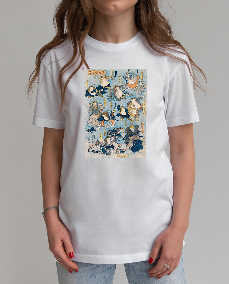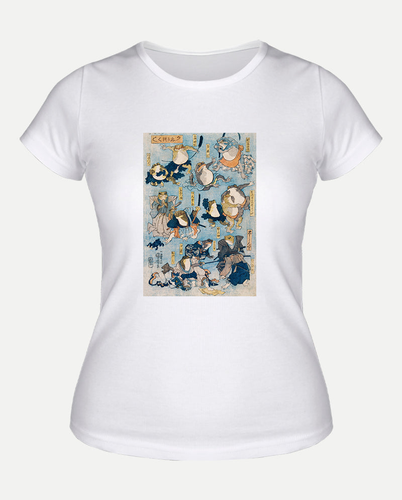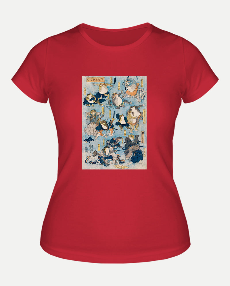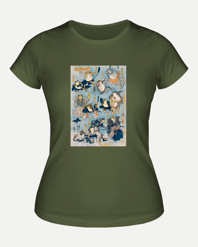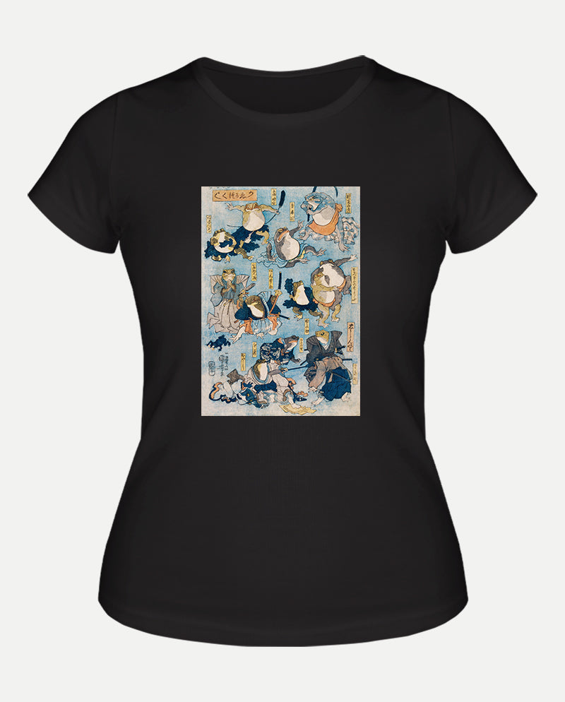Kurbağalar Tarafından Oynanan Kabuki Sahnesinin Ünlü Kahramanları Kadın Tişört