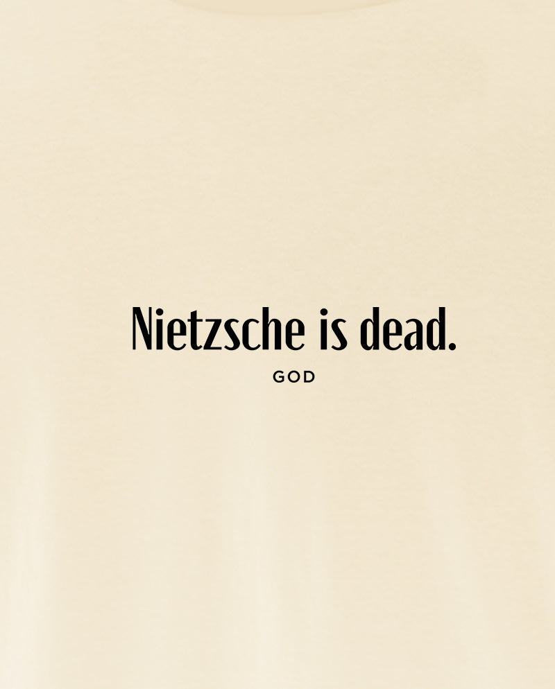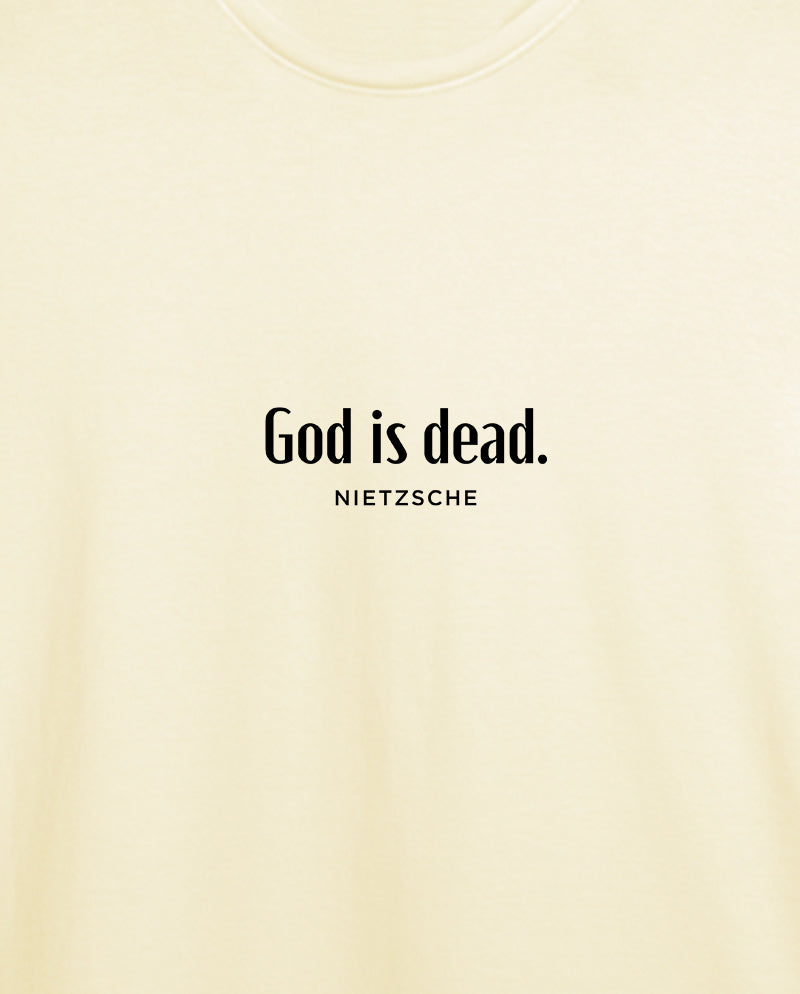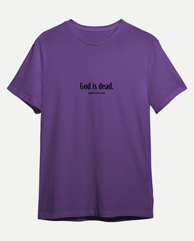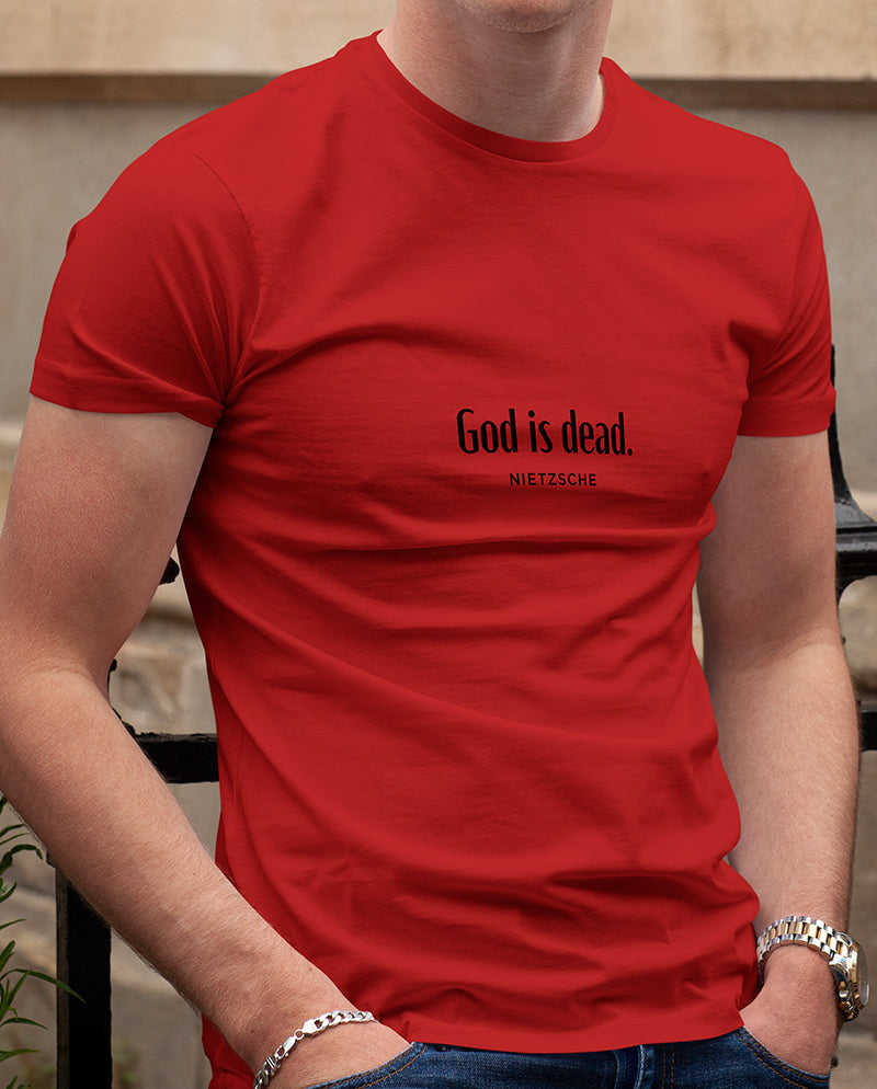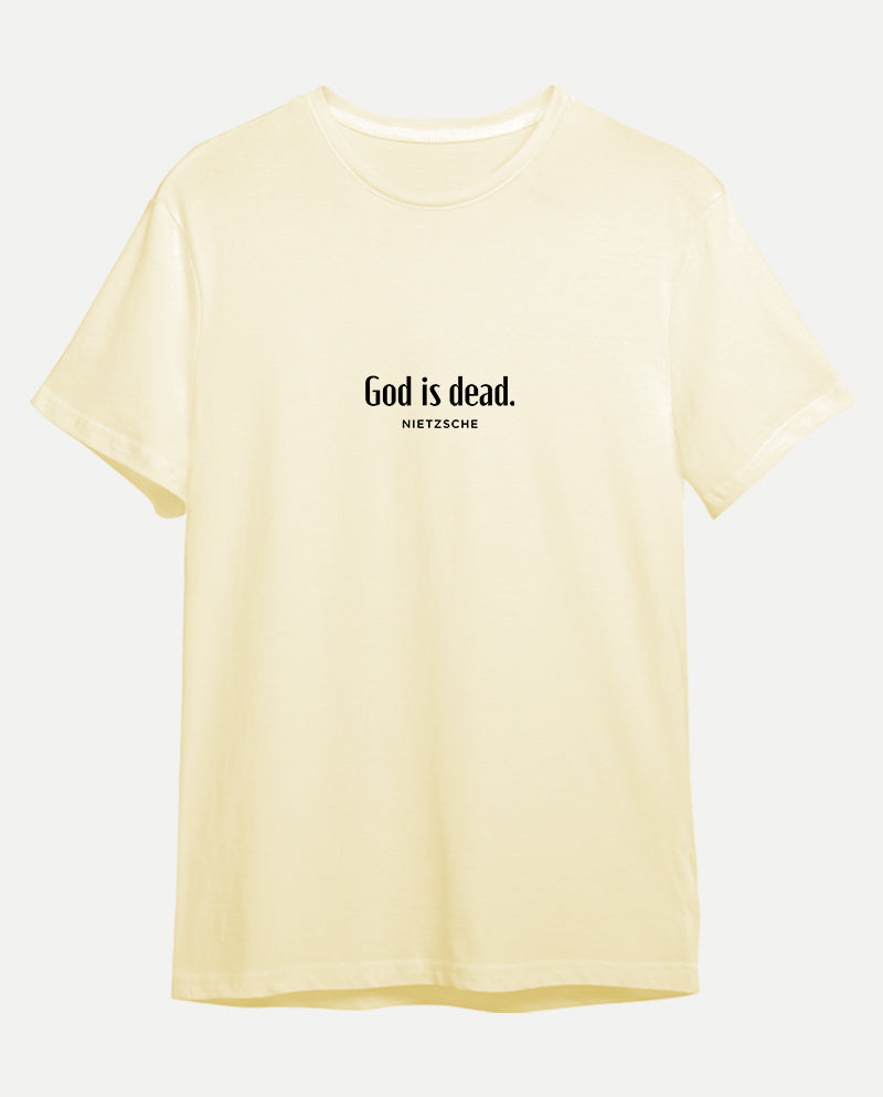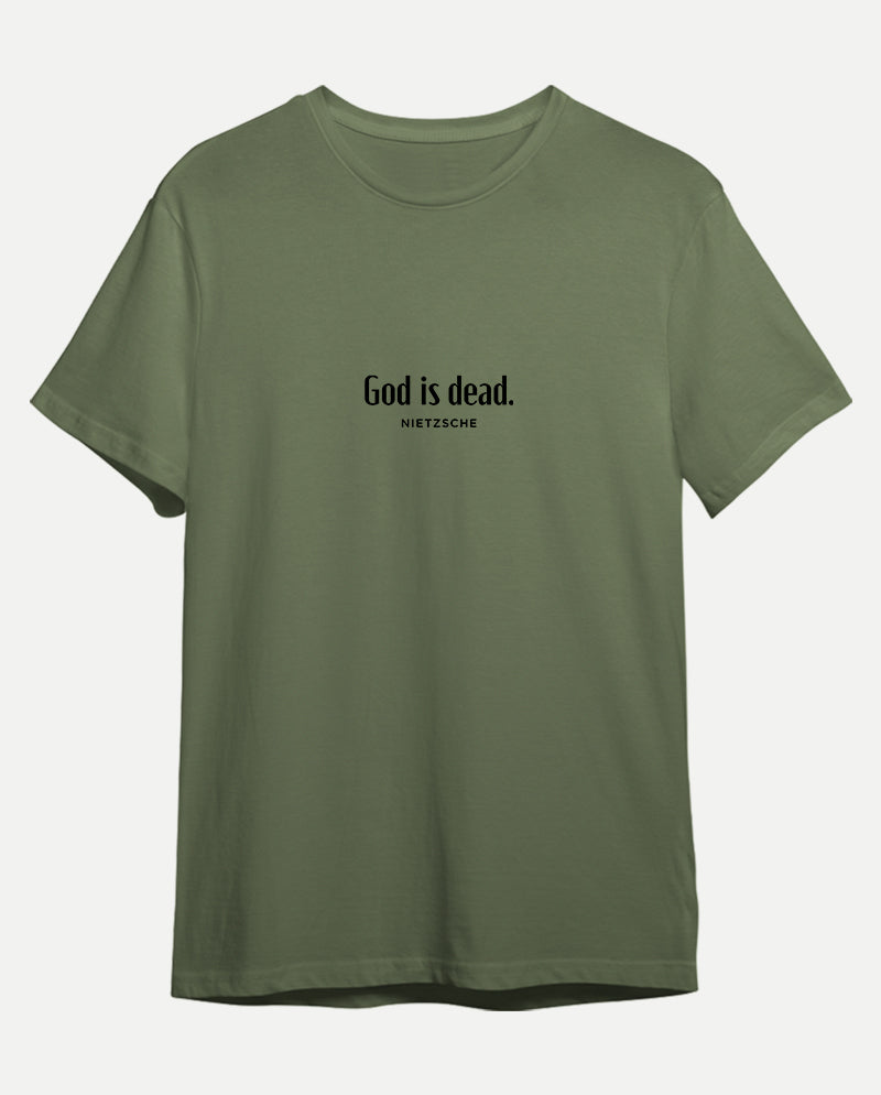 Bizim tişörtün arkasında ise bir ters köşe yatıyor. “Nietzsche öldü” diyen tanrı. Meseleyi bir de karşı taraftan dinlemek lazım…