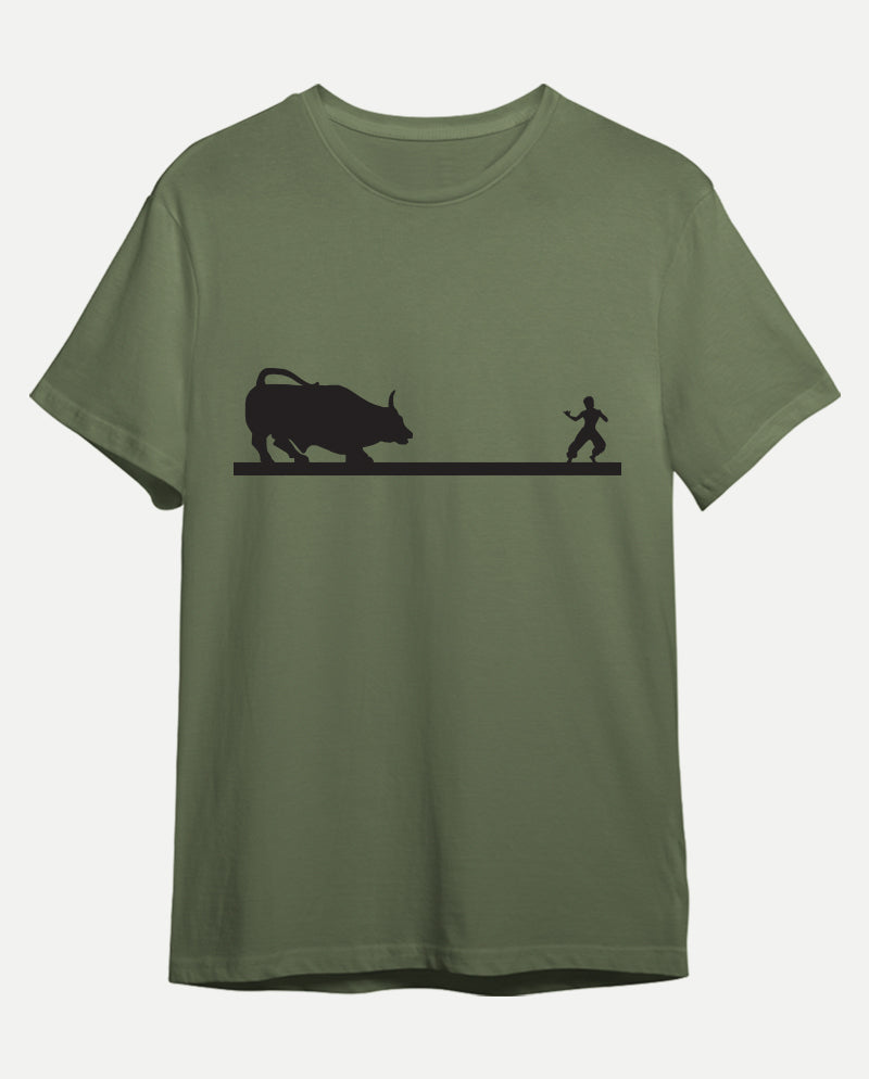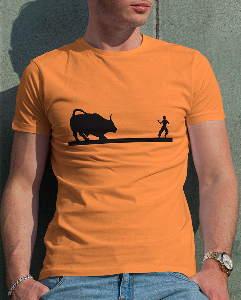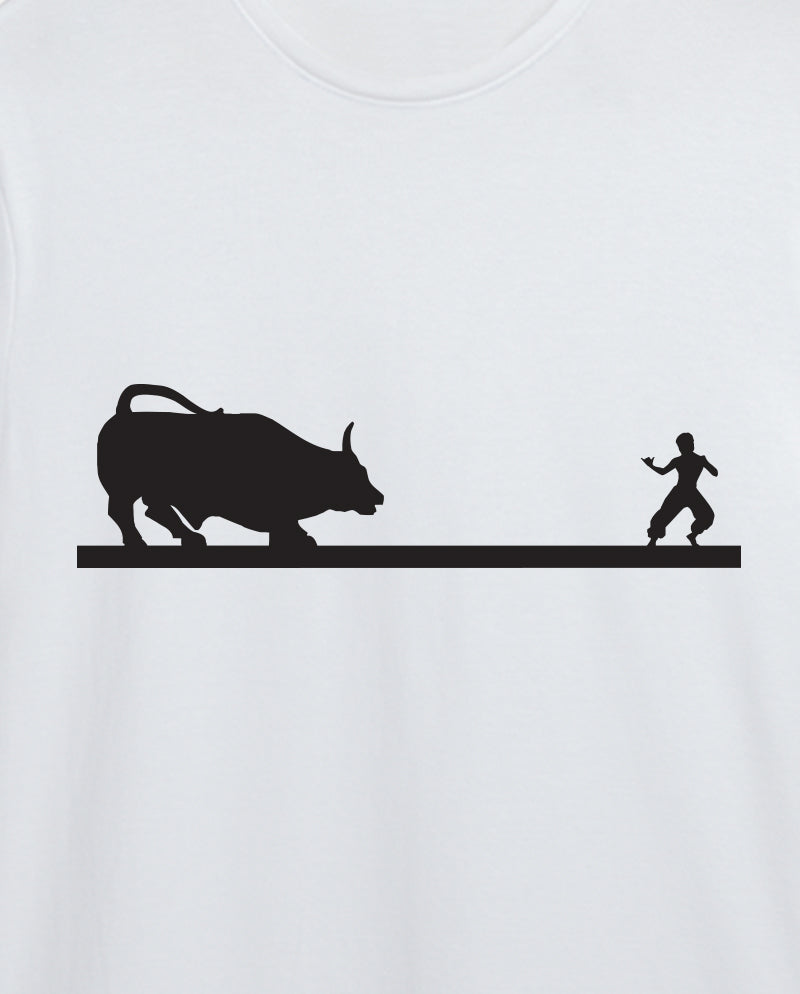 Bruce Lee ve ikonik duruşu boğaya karşı. Bütün eski çocukların haksızlığa karşı duran aksiyon karakteri.