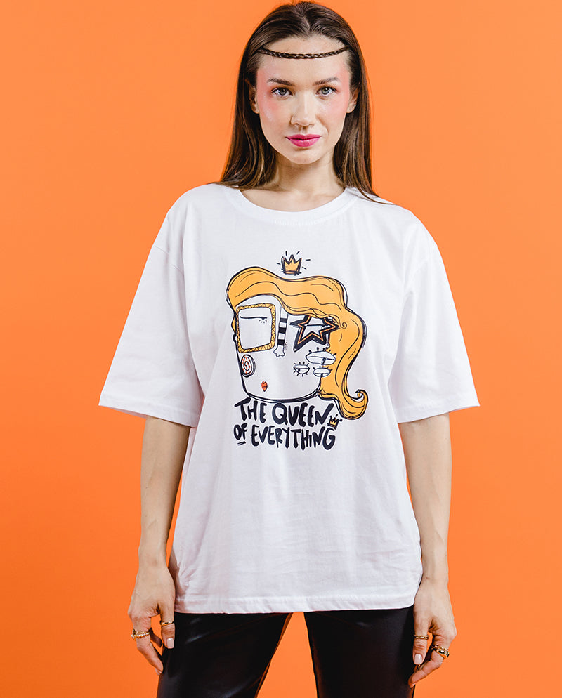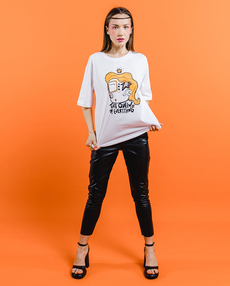 Mecburen muhteşem olanlar için yeni icadımız olan Glam Rakı koleksiyonundan Queen of Everything Tişört size göz alıcılığı ve glam rock’ın ışıltısını getiriyor. Tişört mecburen değil her çeşidiyle, herkes tarafından sevilen muhteşem bir şeydir. Queen of Everything Tişört kendi hayatının kraliçesi olan herkes için. Kraliçeliğini kimseye kaptırmayan şahaneler bu tişört ile kraliçeler gibi ışıldamaya devam edebilir.