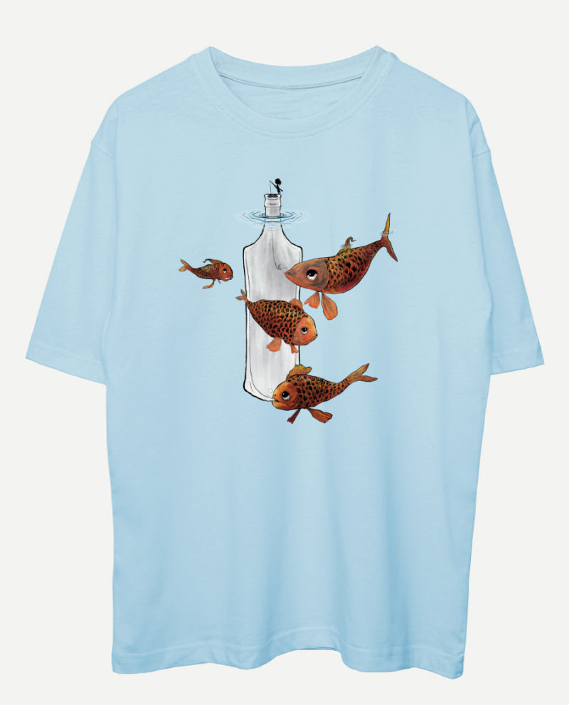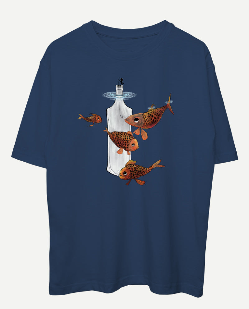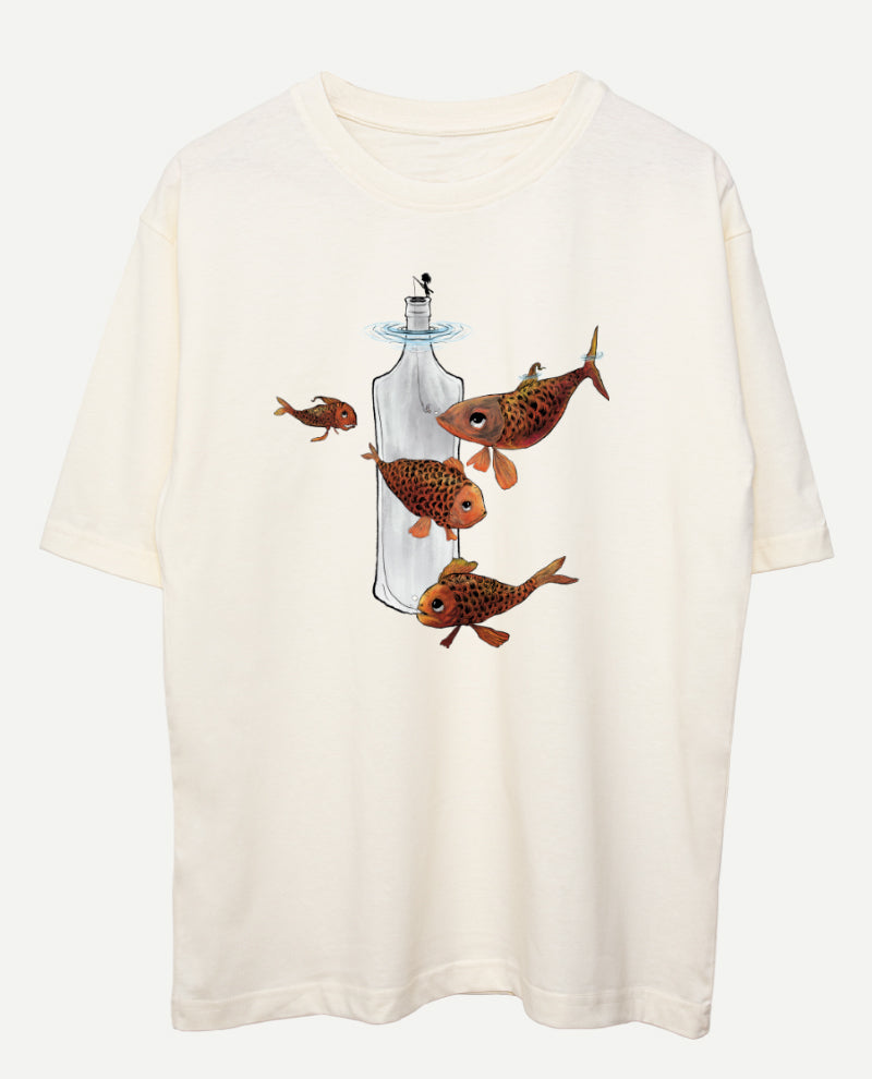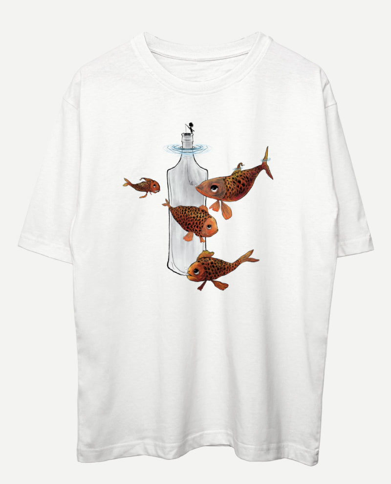 Oltayı şişeye atan belki de balıklara değil rakıya atıyordur. Belki balık değil muhabbet arıyordur. Tasarımcı Günberk Gülderen koleksiyonumuzdaki bu ilk ürününde balık avını yeniden yorumluyor. Şişede Balık Avı Tişört çeşitli renk, beden ve kesim seçenekleriyle Anason İşleri’nde.
